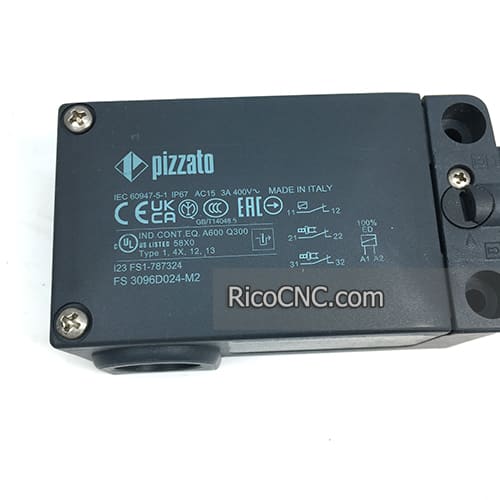 This is a safety limit switch from Pizzato, it is FS series safety door lock switch, the model number is FS 3096D024-M2. It can be used on SCM machine, the SCM Item code is 00L0092299F.