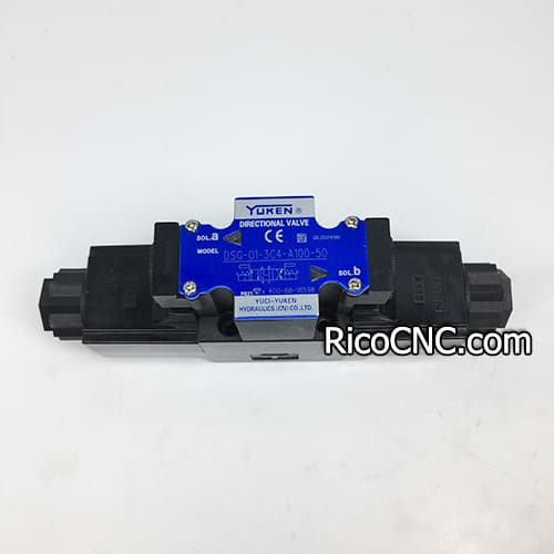 This is Yuken DSG-01-3C4-A100-50 Solenoid Operated Directional Valve. It is DSG-01 series directional valve, high pressure, highflow and low pressure drop, the features of which can be materialized by employing a powerful wet type solenoid and the rational flow channel design.