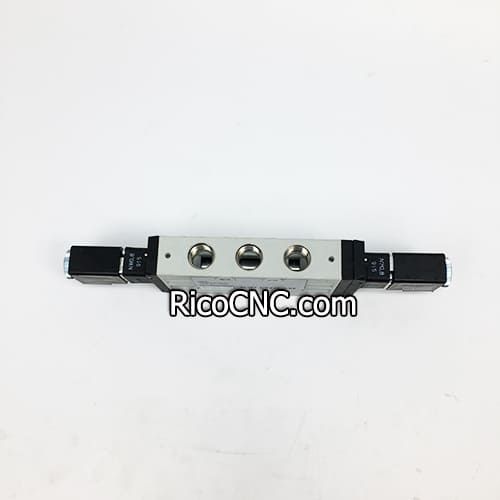 This is AVENTICS 0820059001 solenoid operated air control valve. It is 5/3-directional valve, Series TC15 (TC15-5/3CC-DO-024DC-I-FORM_C-SGL), 4-Way, 24 V dc, double solenoid, M8 Connector. This valve is replacement for Aventics 0820 059 401.