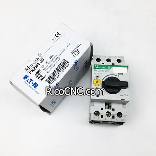 This is EATON Moeller PKZM0-20 motor protection switch, 9 kw, 3-pole, Ir = 16 - 20 A, screw terminals. This motor protection switch is compatible with Homag Holzma 4008240191 or 4-008-24-0191
