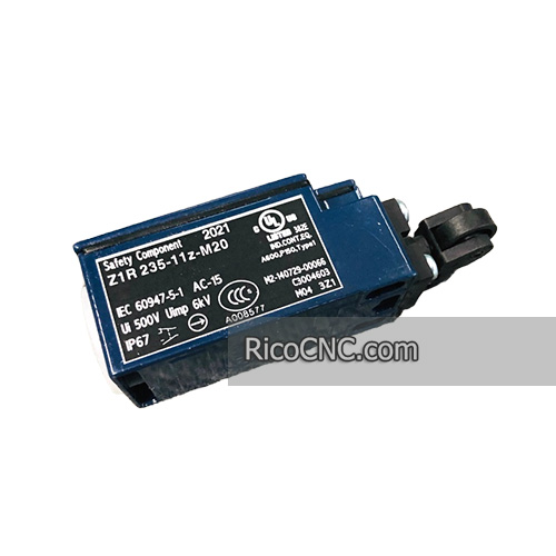 This is a limit switch for Homag machine, the Homag part number is 4008320546 4-008-32-0546. It is made by SCHMERSAL, the part number is 151166167 Z1R235-11Z-1810-204 or Z1R 235-11Z-M20.