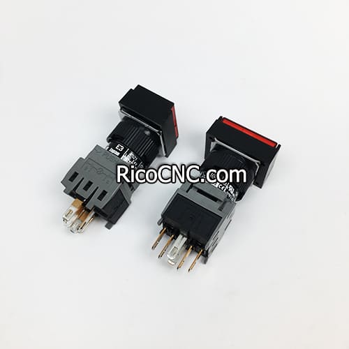 They are pushbutton switches FUJI AH165-TLR11E3 red pushbutton command switch 24VDC LED, pilot lights.
