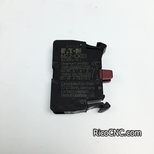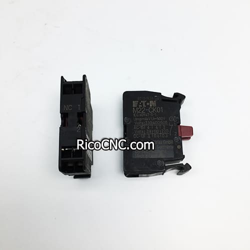 This is EATON M22-CK01 pushbutton contact block. It can be used on Homag woodworking machine. Homag part number is 4008330265 or 4-008-33-0265